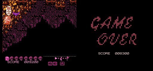 You can pick amongst 4 stages and change their difficulties from easy to hard, though easy is almost impossible as this is one of those games where you have to play it a thousand times to memorize where everything is going to be. Enemies and objects come at you from all sides, and if you touch anything that looks like electricity you'll be reduced to one hit point. If you die your head smashes into the ground and a text bubble with japanese characters pops up. Awesome.